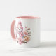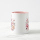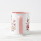 This ceramic coffee mug is shown in a festive holiday pink snowman print.