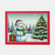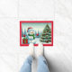 This holiday doormat is shown with a Christmas holiday snowman scene print.
