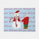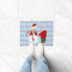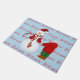 This holiday doormat is shown with a festive holiday Christmas snowman print on a blue background colour.