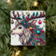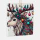 This vibrant illustration features a reindeer adorned with intricate Christmas decorations. Its antlers are transformed into a festive display, adorned with holly, berries, ornaments, and twinkling stars. The reindeer's head is decorated with colourful patterns and beads, capturing the joy and magic of the holiday season.