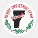 Merry Christmas from Vermont holiday sticker with the design featuring a holiday pattern with the shape of Vermont.