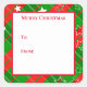 A festive Christmas holiday green and red plaid with stars print is shown on this square sticker.