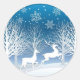 Sticker shown with a festive holiday Christmas deer in forest art print.