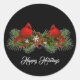 This small size round shape sticker is shown with a holiday cardinals print.