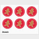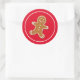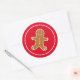 Holiday stickers shown in a red colour background with a cute gingerbread man print.