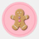 Holiday stickers shown in a pink colour background with a cute gingerbread man print.