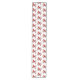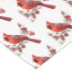 This holiday table runner is shown with a festive Christmas time red cardinal print.