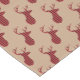 This Christmas holiday table runner is shown with a festive Christmas plaid deer print design.