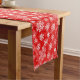 Holiday table runner is shown with a festive snowflakes print.