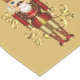 This Christmas holiday table runner is shown with a festive Christmas nutcracker print design.