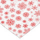 Holiday table runner is shown with a festive snowflakes print.