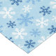 Holiday table runner is shown with a festive snowflakes print.