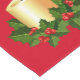 This table runner is shown with a festive holiday Christmas candles print design.