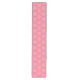 This table runner is shown with a medium Pino Noir Pink background colour and has a festive holiday gold snowflakes print design.
