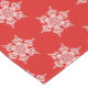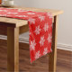 This holiday table runner is shown in a red colour with a festive Christmas snowflakes print.