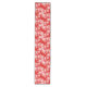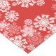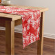 This Christmas holiday table runner is shown with a red background colour and has a festive Christmas snowflakes print design.