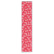 This Christmas holiday table runner is shown with a red background colour and has a festive Christmas snowflakes print design.