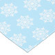This Christmas holiday table runner is shown with a light blue background colour and has a festive Christmas snowflakes print design.