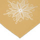 This Christmas holiday table runner is shown with a gold background colour and has a festive Christmas white snowflakes print design.