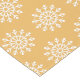 This Christmas holiday table runner is shown with a gold background colour and has a festive Christmas snowflakes print design.