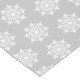 This Christmas holiday table runner is shown with a silver background colour and has a festive Christmas snowflakes print design.