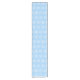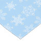 This holiday table runner is shown in a light blue colour with a festive Christmas snowflakes print.