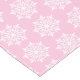 This Christmas holiday table runner is shown with a Pink background colour and has a festive Christmas snowflakes print design.