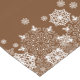 This Christmas holiday table runner is shown with a chocolate background colour and has a festive Christmas white snowflakes print design.