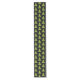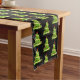 This holiday table runner is shown with a festive Christmas tree pattern.