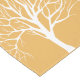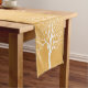 This Christmas holiday table runner is shown with a gold background colour and has a winter white tree print design.