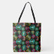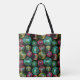 This tote bag is shown with a multi coloured Christmas holiday snowflakes print design.