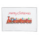 Holiday pillowcase shown in a festive Christmas train filled with presents print.