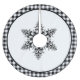 This holiday tree skirt is shown in a black and white gingham and snowflake country look.