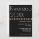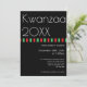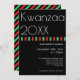 A vertical invitation for a Kwanzaa celebration. The invite is red, black, and green with white letters. Customize the text, add this invitation to your cart, and enjoy your Kwanzaa event.