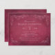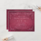 This formal invitation for a holiday celebration features an aged vintage wine label style design. Rustic hand-drawn sketches of grapevine leaves frame the important details. A simple flourished design with the event date appears on the reverse side. Burgundy red and mauve colours.
