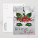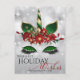 Holiday Postcard | Warmest Holiday Wishes in contemporary font and modern script calligraphy. A sparkly silver bokeh background sets off this Beautiful decorated Green and Gold Unicorn Face. She has gorgeous green glitter eyes with long lashes and a shiny gold and green striped horn and ears. - she wears a floral tiara of red poinsettias , holly and red lilies - Customize text at the bottom or you can delete it - This is a holiday non denominational design suitable for family or office to use. All Original Artwork © by WhimsicalArtwork™ This is part of a mix and match coordinated Holiday Collection.