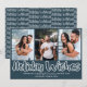 Holiday Wishes 3 Photo Holiday Card with open outline lettering and casual script typography. The photo template is ready for you to add 3 of your favourite photos, which are displayed in vertical, portrait format. The christmas card reads "'Holiday Wishes .. wishing you a wonderful christmas and new year" followed by your personalized text. Holiday Wishes is also repeated in an all over pattern on the reverse side. Stylish minimalist design and you are welcome to change the background colours of the card, to better suit your photos, if you wish (click "customize further"). Please browse my store for alternative festive wording.