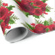 This holiday wrapping paper is shown with a lovely red roses and holly print. Matte paper shown.