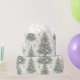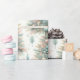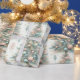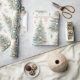A charming roll of Christmas wrapping paper features beautifully illustrated trees adorned with pastel ornaments, berries, and stars, setting a festive mood for the holiday season.