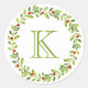 Holiday Wreath Initial Monogram, Green Classic Round Sticker