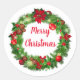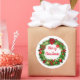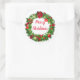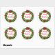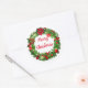 Holiday sticker shown with a festive wreath print. Large size shown