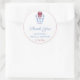 Thank you stickers for any event (shown here for a Bridal Shower but all of the text fields are customizable). The design features a watercolor blue and white ginger jar decorated with a festive red bow.
