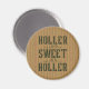A fridge magnet for those who live the backwoods country life. "Holler Sweet Holler" text on vintage earth tones pinstriped background