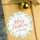 Merry Christmas personalized round stickers featuring modern, elegant winter leaves and berries with your name and greeting in chic lettering. All text, fonts, font colours can be modified, just click the "customize further" link. **ALL STICKER STYLES are already done for you in our store plus MATCHING items in our store.