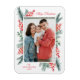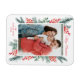 Elegant holiday photo magnet featuring your photo framed by red watercolor holly berries with green pine boughs and foliage. "Merry Christmas" is displayed at the top in an elegant red calligraphy script. Personalize the botanical holiday magnet by adding your name and the year. Designed to coordinate with our Holly and Evergreen holiday collection.