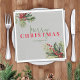 Holly and Pine on Grey Christmas wedding napkins with a beautiful spray of holly, red berries and pine on the party napkins for a festive Holiday party.