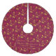 Golden holly leaves and red berries on dark red patterned Christmas personalized name and message tree skirt. Original graphic art and pattern design by www.mylittleeden.com