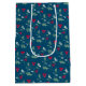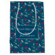 Green grey holly leaves and red berries on blue patterned Christmas personalized name and message gift bag. Ideal for mass business Christmas gifting to family Christmas favours. Original art and pattern design by www.mylittleeden.com