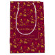 Holly and red berries foliage pattern custom red medium gift bag