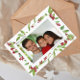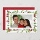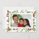 This elegant and simple petite (4.5" x 6.25") photo holiday card features hand painted watercolor stems and leaves as well as illustrated holly berries. Change the image and text to your liking.